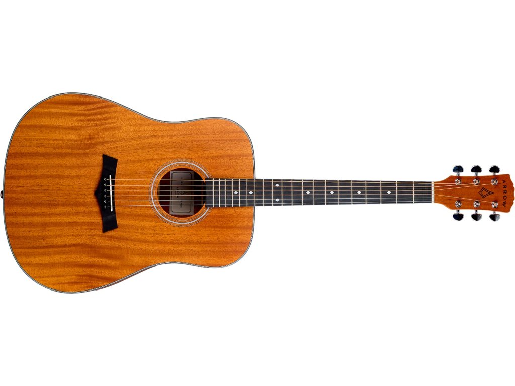 Akustická kytara Arrow Silver D Mahogany v klasickém dreadnought tvaru nabízí vynikající kombinaci teplého tónu a výrazných basů. Celomahagonové tělo dodává kytaře pevnost a vyvážený zvukový charakter. Richlite hmatník je odolný a nabízí hladký povrch pro pohodlné hraní. Kytara je ideální pro různé hudební styly a je vhodná jak pro začínající, tak i pro pokročilé hráče.