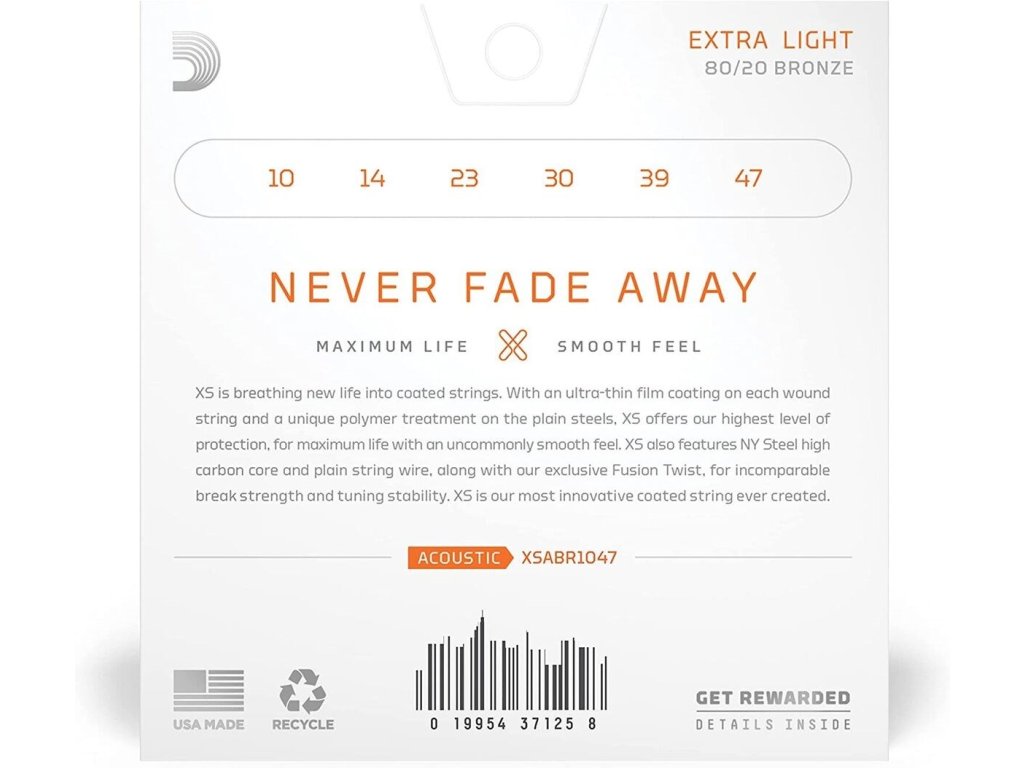 Americké struny D'Addario XS představují technologický průlom na poli dlouhohrajících (potahovaných) strun a patří mezi špičku strun pro akustickou kytaru.