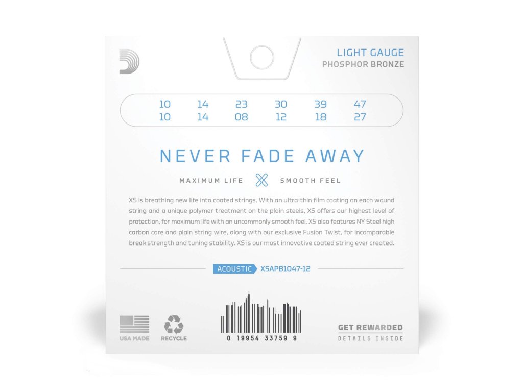 Americké struny D'Addario XS Acoustic Phosphor Bronze představují technologický průlom na poli dlouhohrajících (potahovaných) strun a patří mezi špičku strun pro akustickou kytaru.