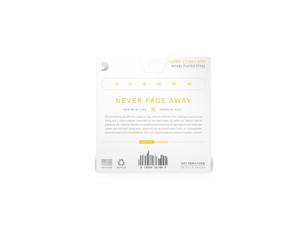 Prémiová řada dlouhohrajících strun pro elektrickou kytaru. Tvrdost 09/46.