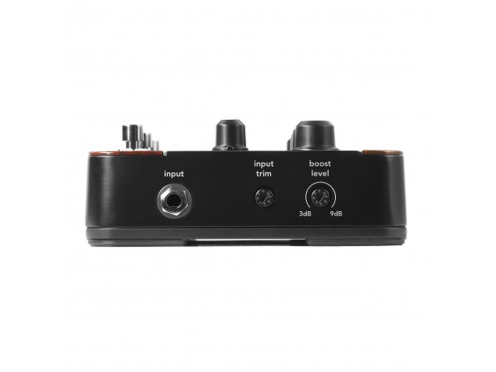 Compressor ; 4-band eq with: bass, mids, treble, high-pass filter; reverb (2x), delay (2x), chorus (2x), flanger & tremolo effects; foot-switchable boost; switchable phase reversal; di-out; dimensions (B x H x D): 241mm x 142mm x 55mm. 9-Volt-power supply required (not included)