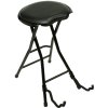 Skládací kytarová stolička s integrovaným stojanem na kytaru.