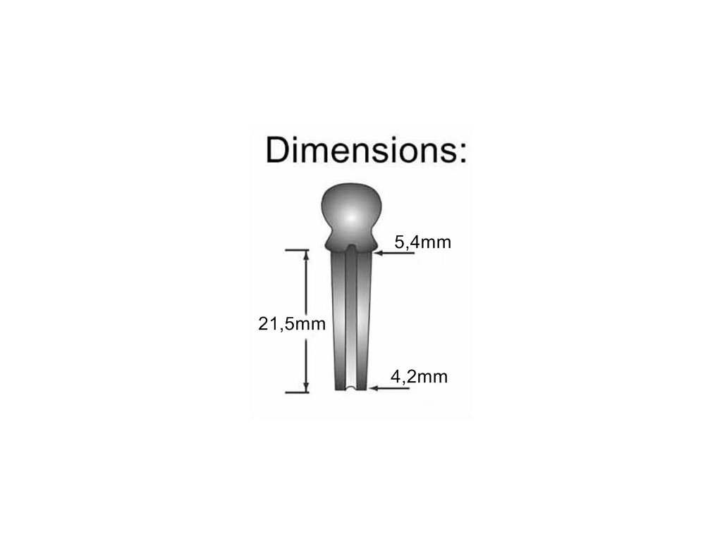 Kobylkový kolíček z pravé kosti, ozdobený perleťovým očkem.