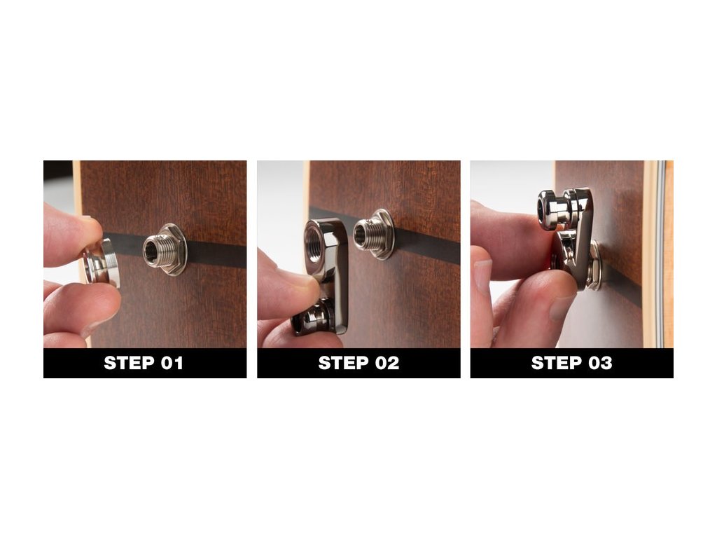 Adaptér pro Schaller stap lock, který se přímo šroubuje na standarní závit výstupu pro jack. Na tento Akusti Lok pak přímo namontujete jakýkoliv Schaller S-Lock nebo strap lockem vybavený řemen.