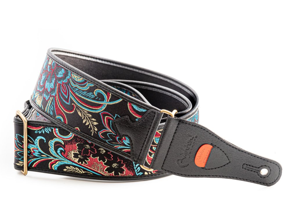 Kytarový popruh Beppu II: Beppu (???; Beppu-shi) je japonské město horkých pramenů, známé svými „pekly na zemi“ a unikátními lázněmi, které nikde jinde na světě nenajdete. Beppu se může pochlubit největším počtem „onsen“ (parních průduchů stoupajících ze země) v celém Japonsku a také největším objemem horké vody na světě. Chtěli jsme věnovat kytarový popruh tomuto fascinujícímu místu a našli jsme velkolepou látku, která zachycuje charakteristický japonský styl. Tento popruh s černým pozadím a vyšívanými botanickými motivy je naprostá krása, která dokáže vylepšit i tu nejjednodušší kytaru, pokud někdo někdy považuje její kytaru za obyčejnou ;) A pokud je to tak, tento popruh jistě udělá vaši kytaru mnohem elegantnější.