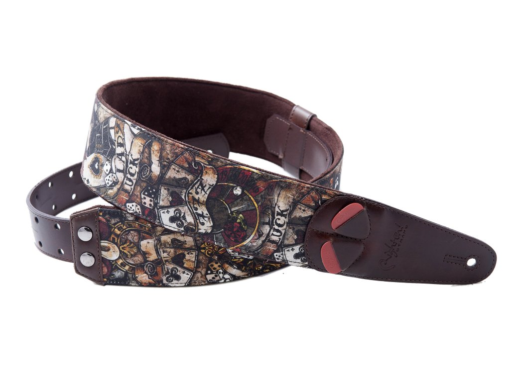 Popruh má na sobě kapsičky pro trsátka.